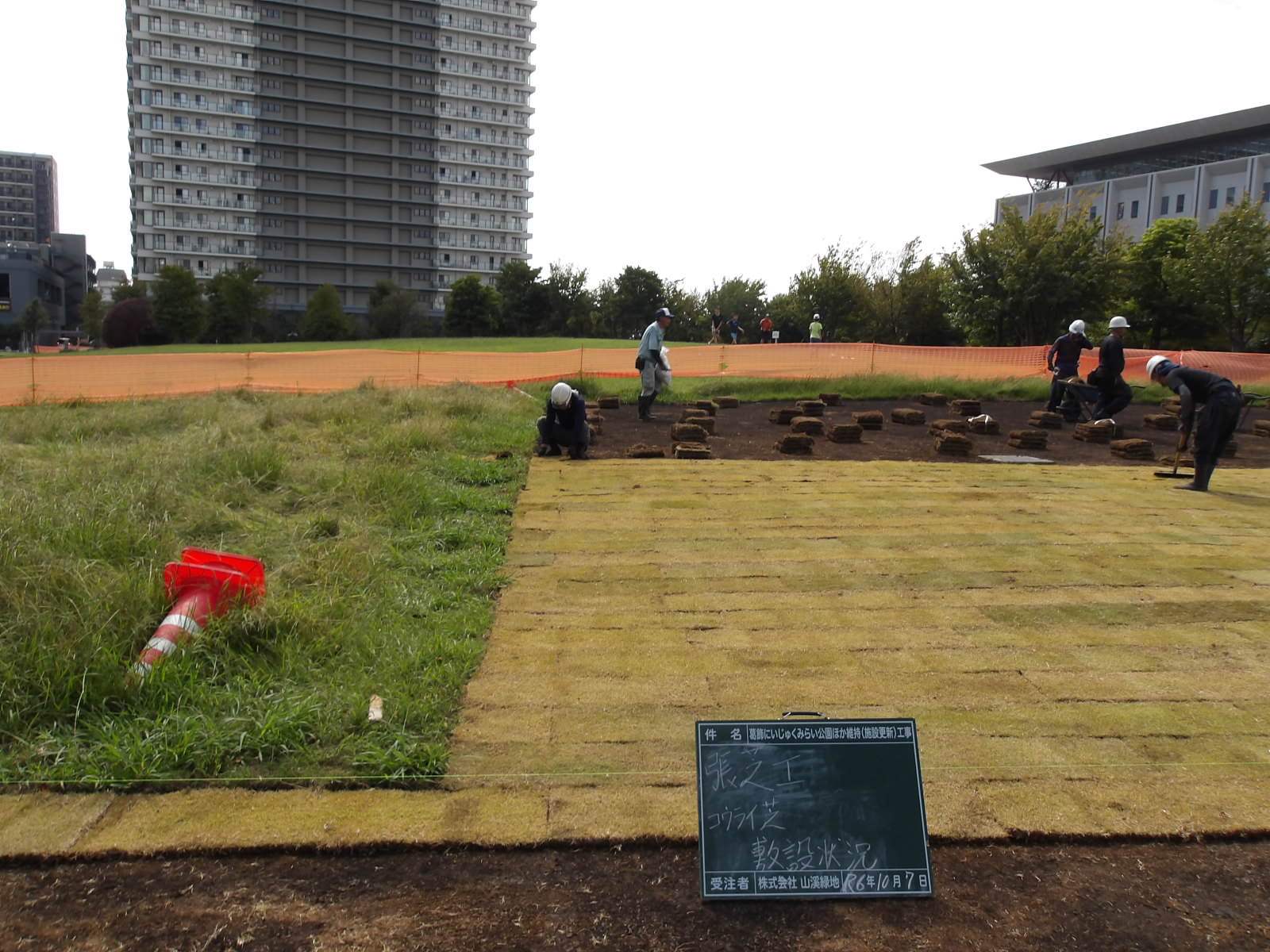 「にいじゅくみらい公園のような大規模な現場では、利用者の皆様の動線を一切止めずに施工を進める『安全管理』が最大のミッションでした。遊具以外の舗装や付帯設備の更新は地味な作業に見えますが、つまずきをなくし、排水を改善することで公園の寿命は確実に延びます。大学キャンパスと隣接するこの美しい景観を、10年後も変わらず維持できるよう、見えない下地から丁寧に仕上げました。」